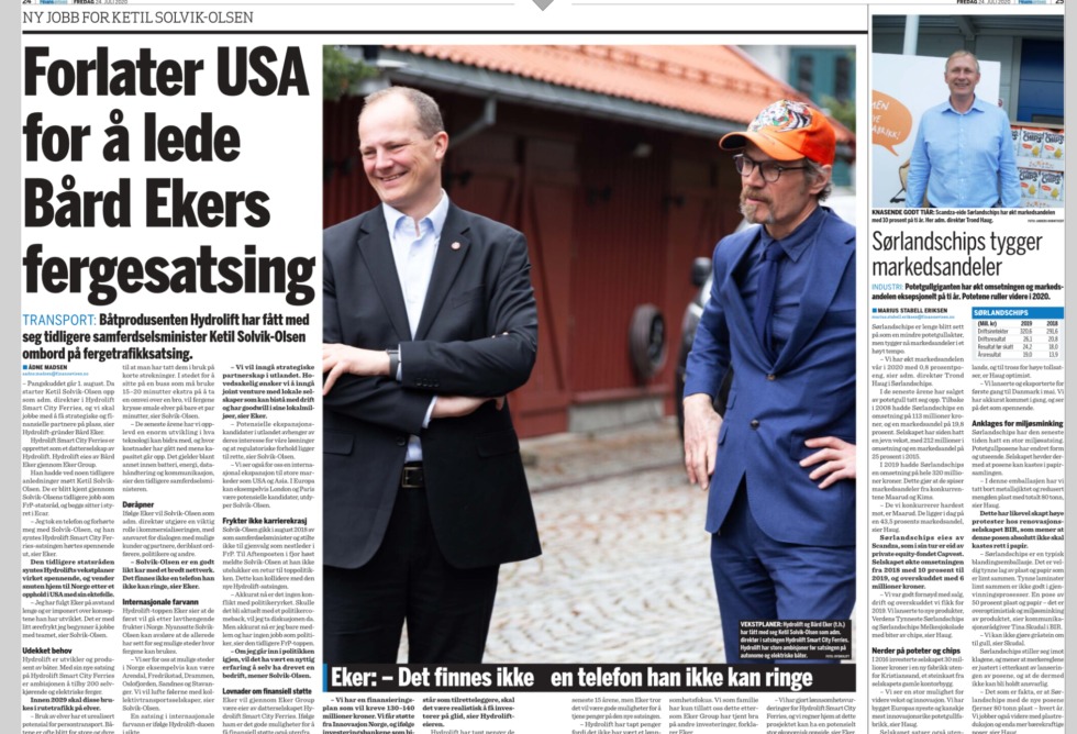 Hydrolift and Bård Eker is joined by Ketil Solvik-Olsen as CEO in its new venture Hydrolift Smart City Ferries. Hydrolift has large ambitions for its move into autonomous, electric vessels.